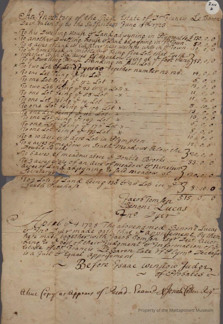 Inventory of the Real Estate of Dr. Francis LeBaron, deceased, taken by us, the subscribersCollection