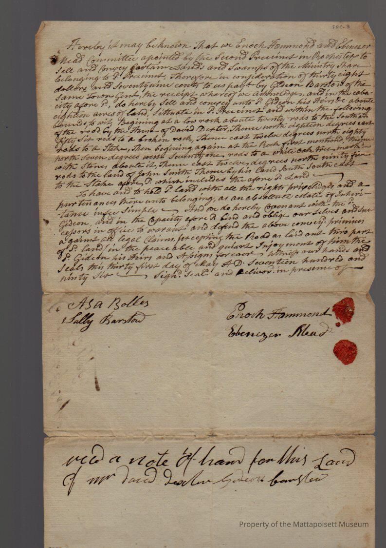Deed from Enoch Hammond and Ebenezer Mead, committee appointed by the Second Precinct to Gideon Barstow.Collection