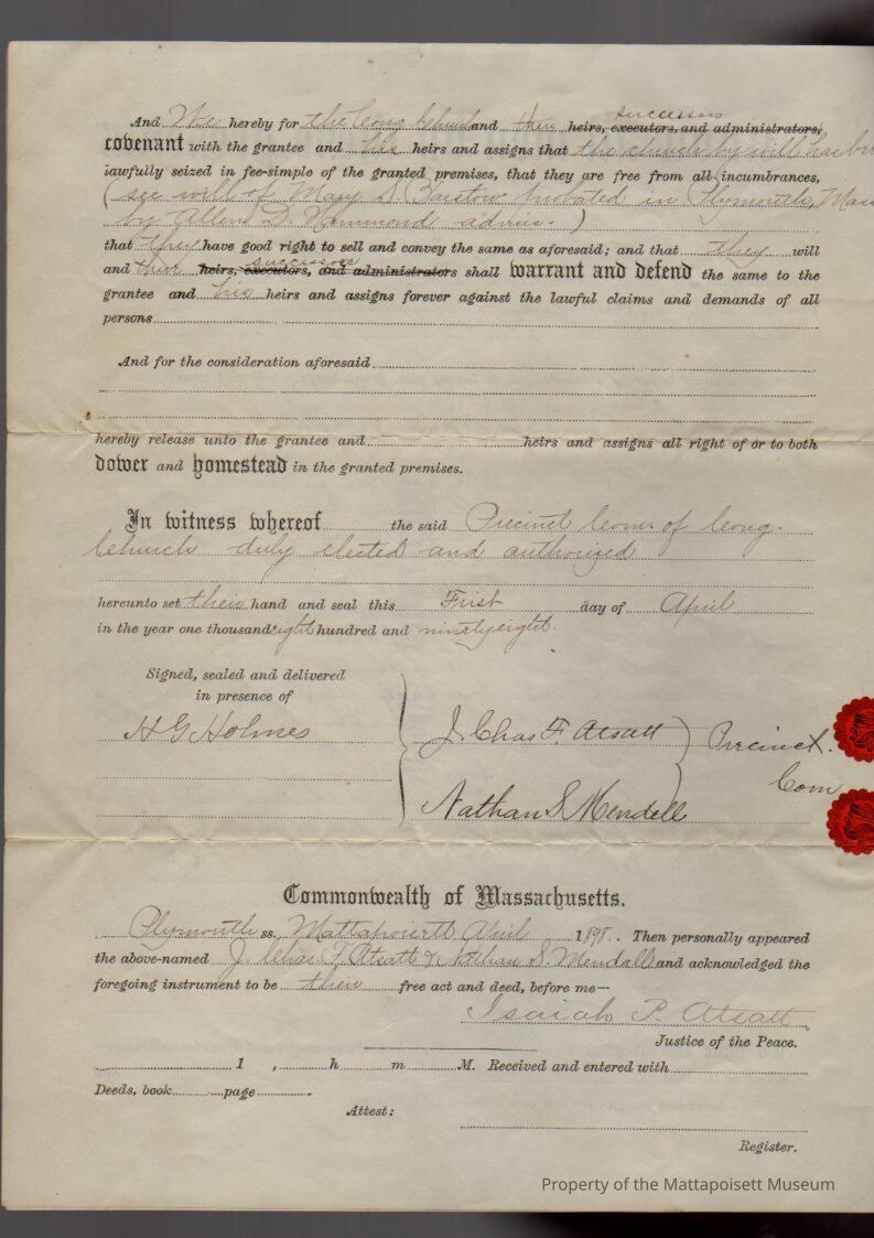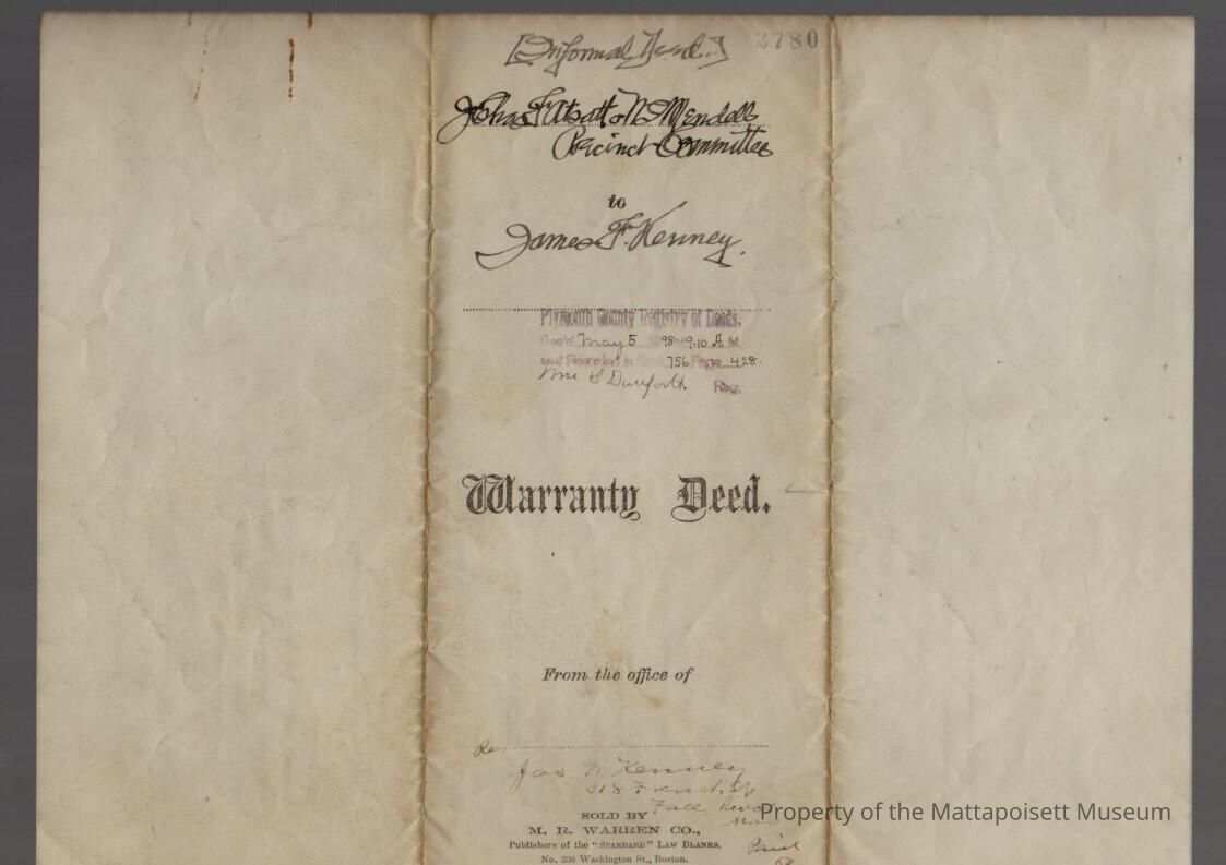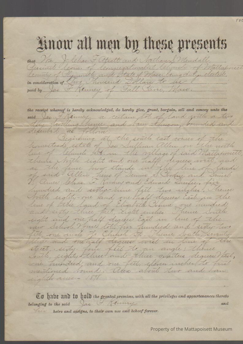 Deed of J. Charles F. Atsatt and Nathan S. Mendell, precinct committee to James F. Kenney.Collection