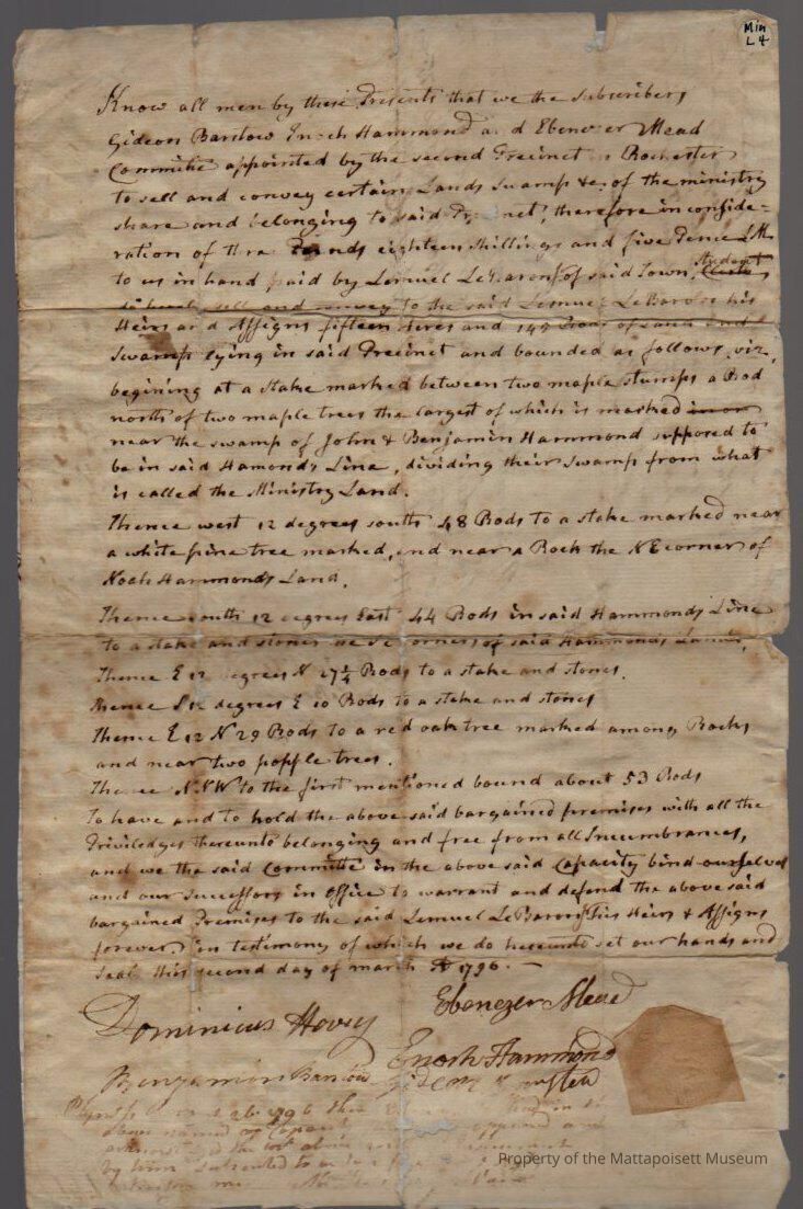 Deed from Gideon Barstow, Enoch Hammond and Ebenezer Mead, committee appointed by the Second Precinct to sell certainly lands of the ministry.Collection