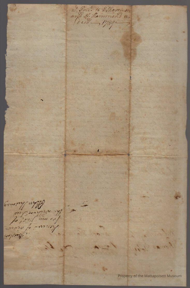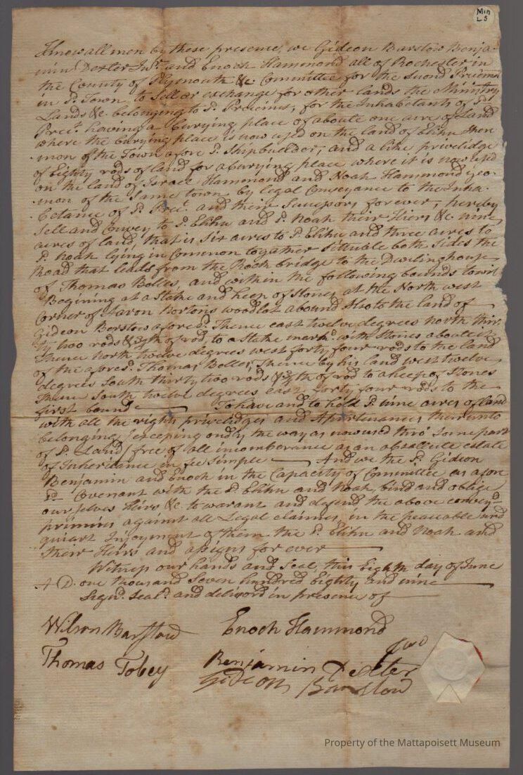 Deed Gideon Barstow, Benjamin Dexter and Enoch Hammond, committee for the Second Precinct to sell land, E. Sherman and N. Hammond.Collection