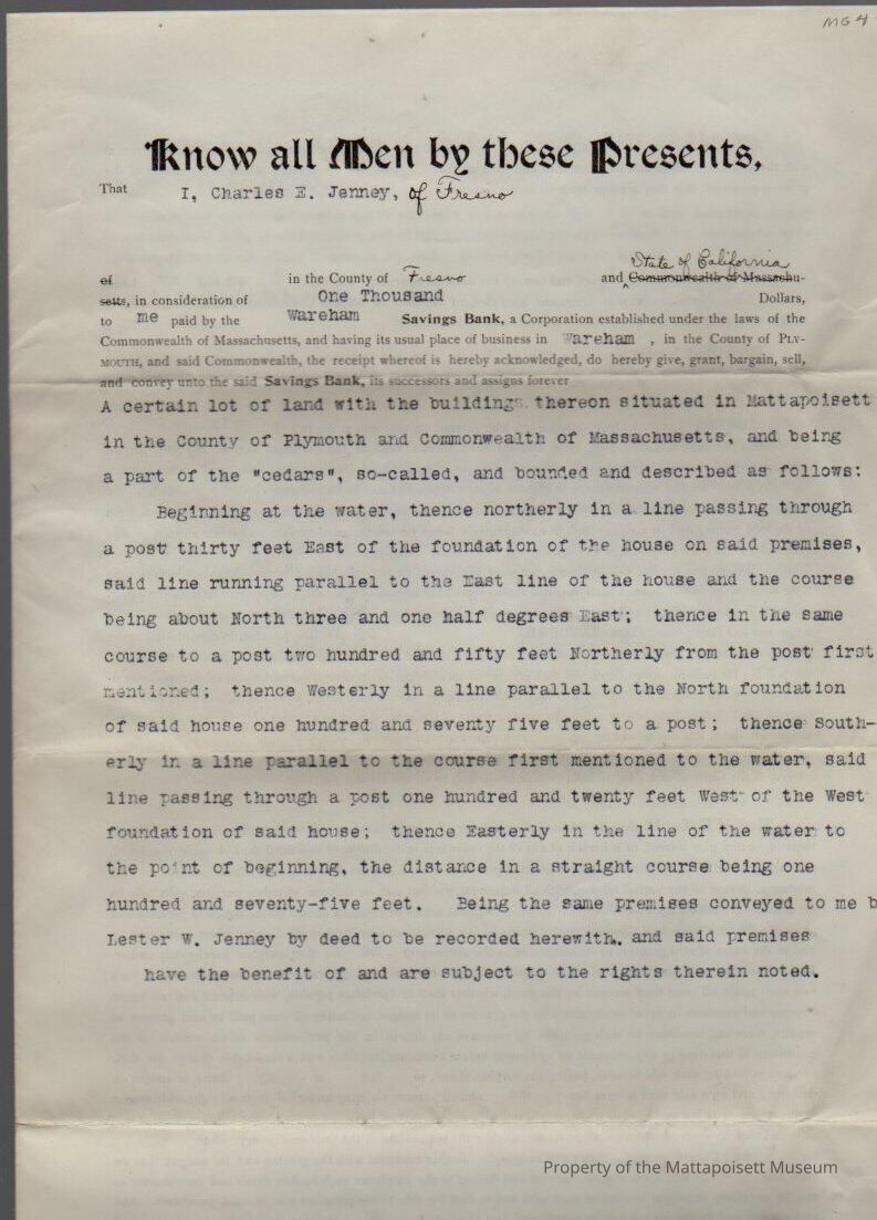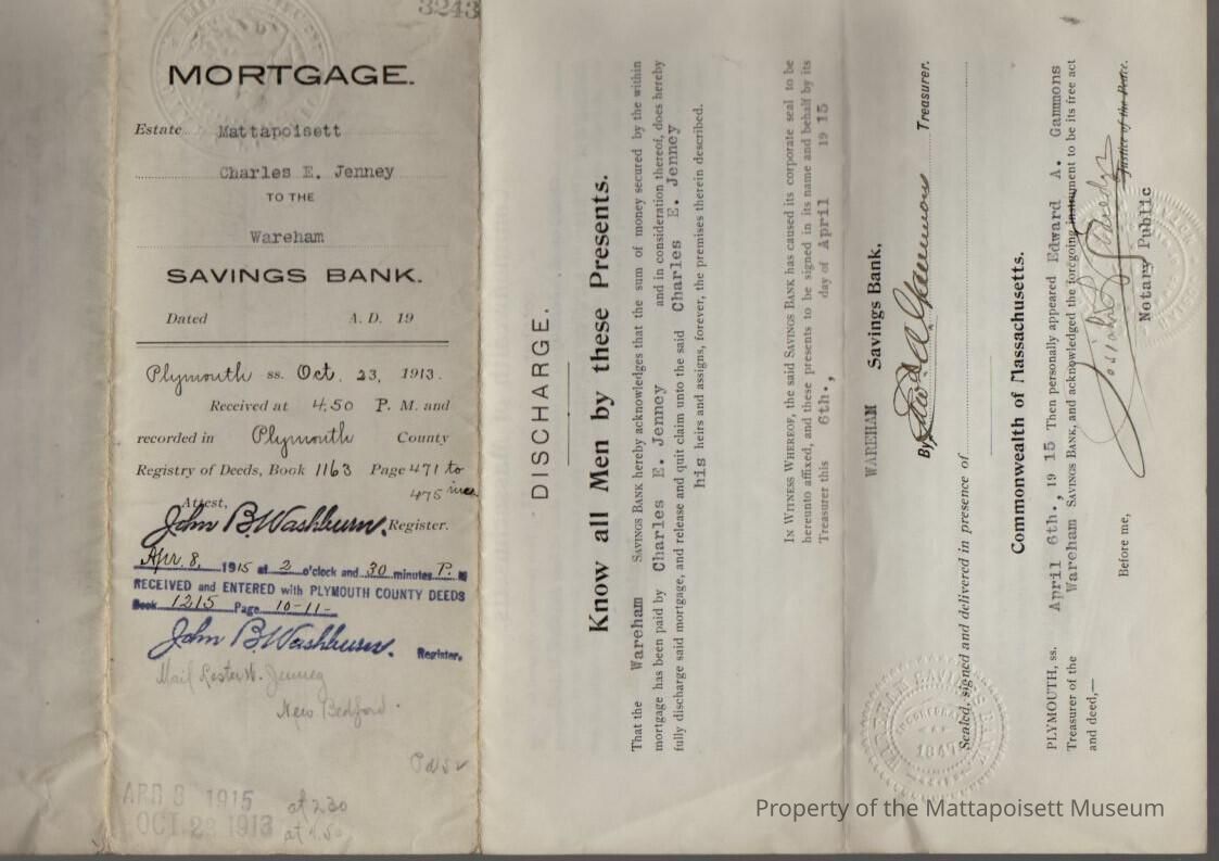Mortgage Charles E. Jenney to the Wareham Savings BankCollection