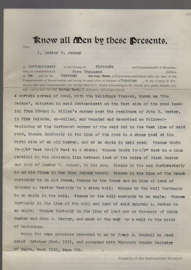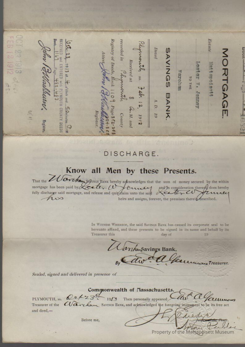Mortgage discharge Lester W. Jenney to the Wareham Savings BankCollection