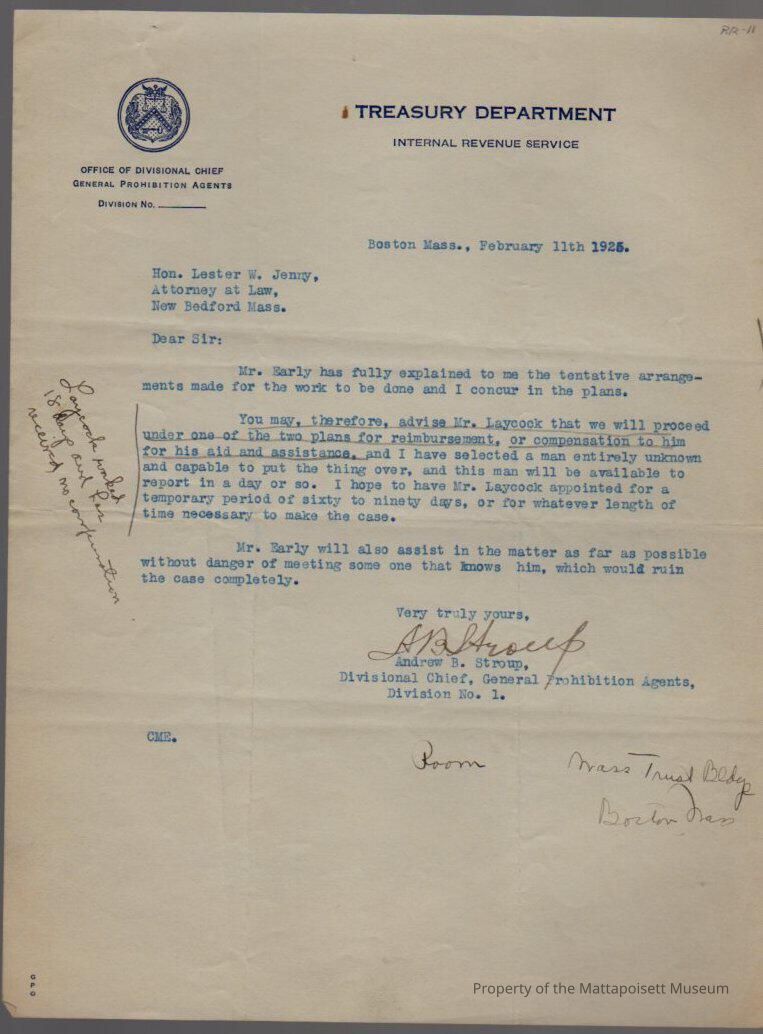 Letter to Lester W. Jenney from Andrew B. Stroup, Divisional Chief, Division 1. General Prohibition AgentsCollection