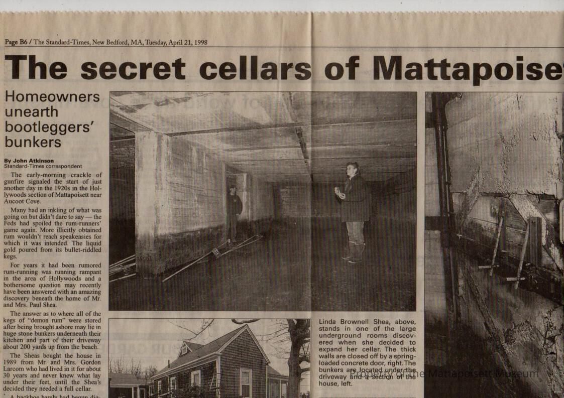 Standard-Times article "The secret cellars of Mattapoisett", Homeowners unearth bootleggers' bunkers.Collection