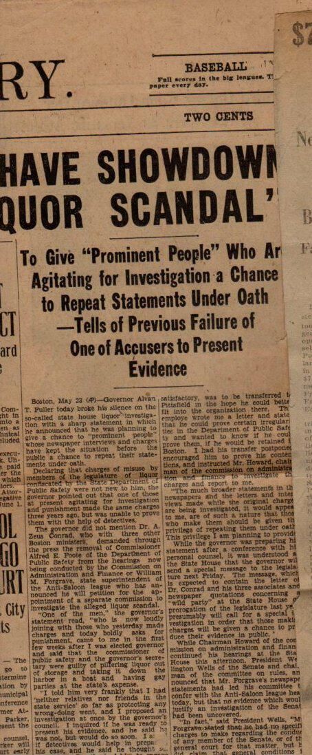 Newspaper article "Have showdown liquor scandal" to give "Prominent People" who are agitating for investigation a chance to repeat statements under oath –tells of previous failure of one of accusers to present evidence.Collection