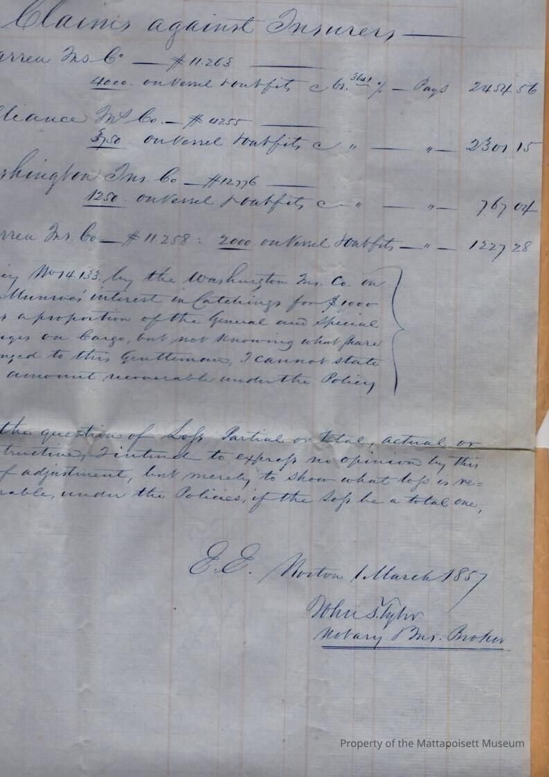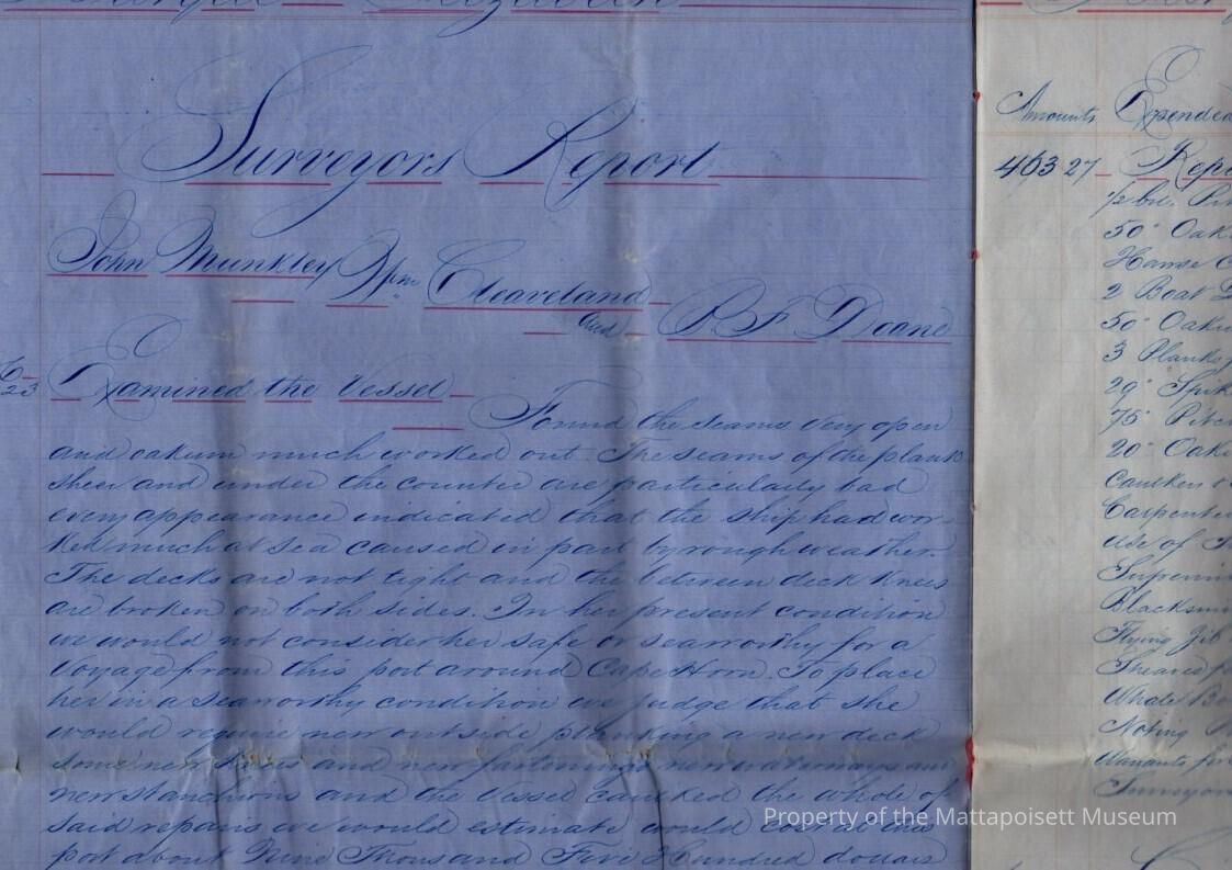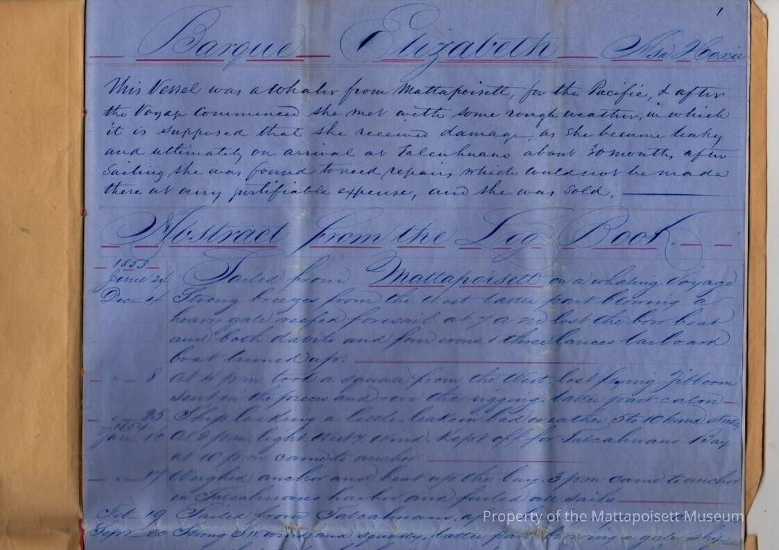 History and information on Barque Elizabeth. Abstract from log book, survey report, examination of vessel, financial statements, claims against insurers.Collection