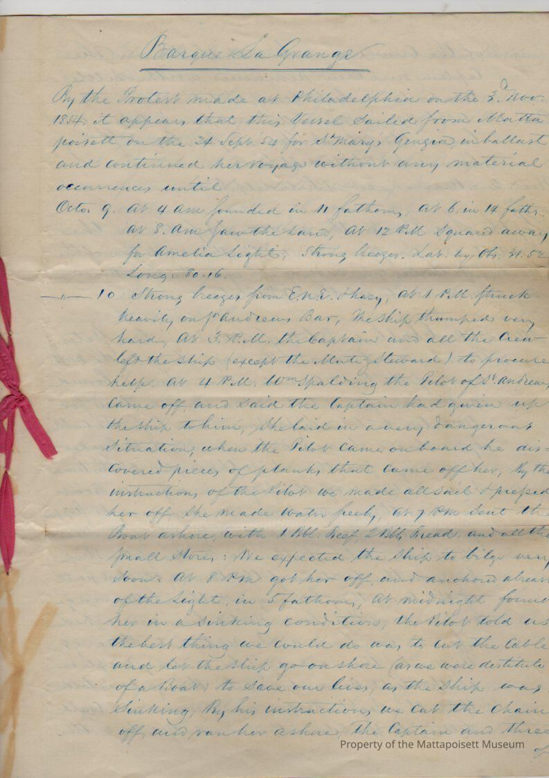 Incident log for Barque La Grange by John S. Tyler.Collection