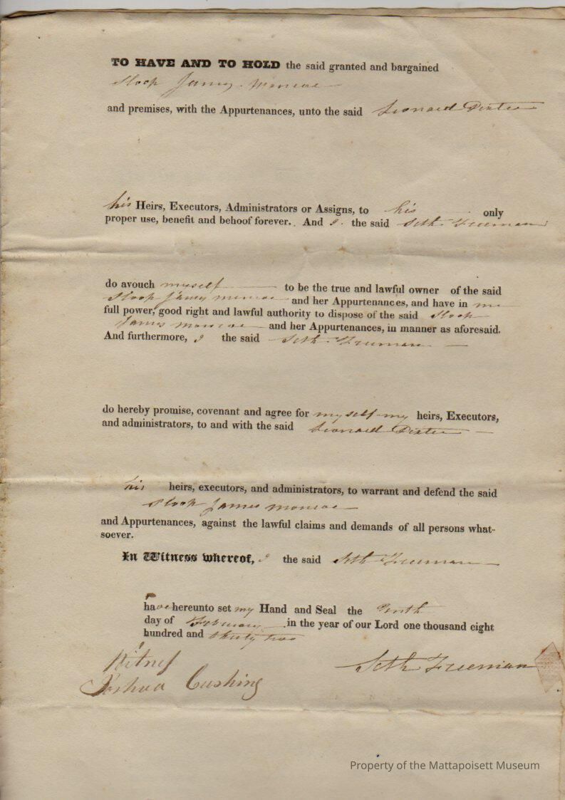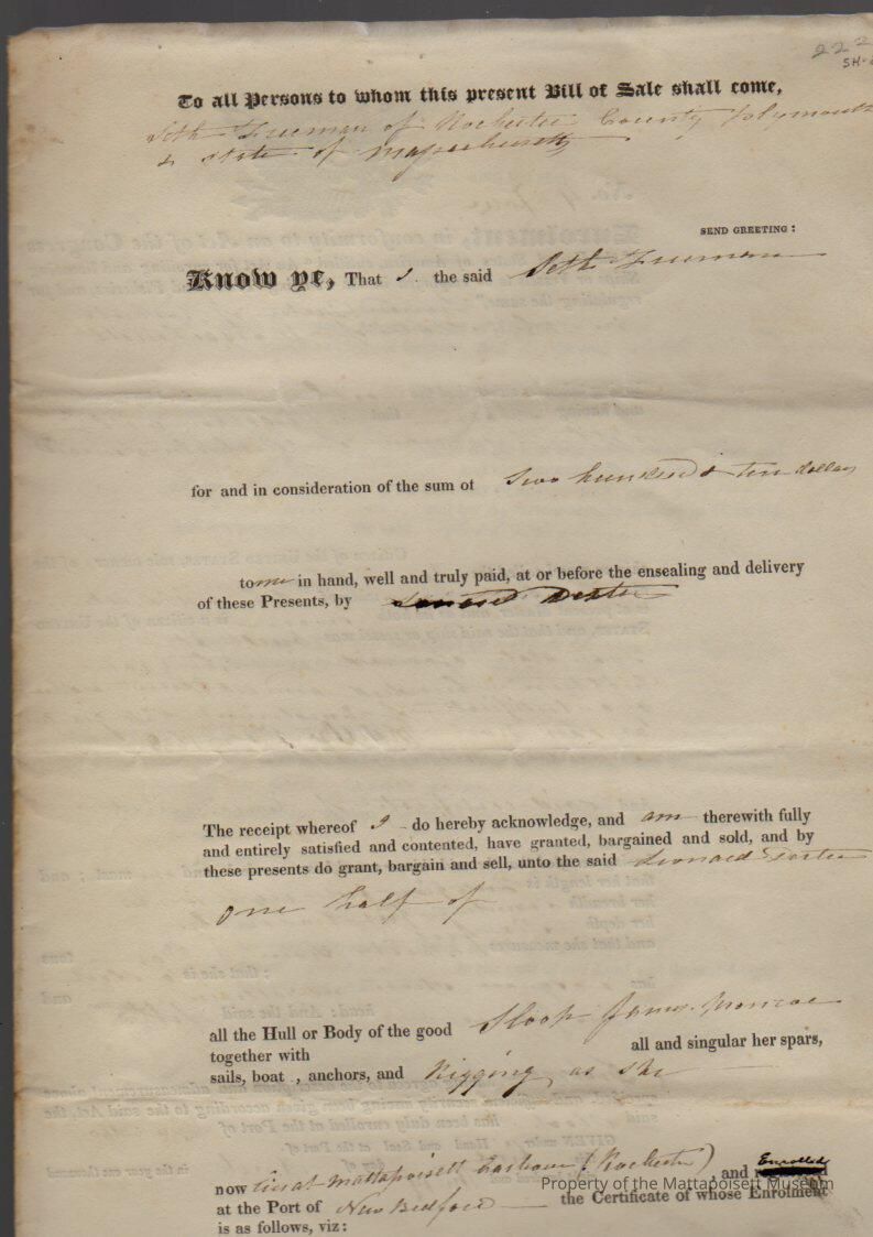 Sale of 1/2 of Sloop James Monroe from Seth Freeman to Leonard Dexter.Collection
