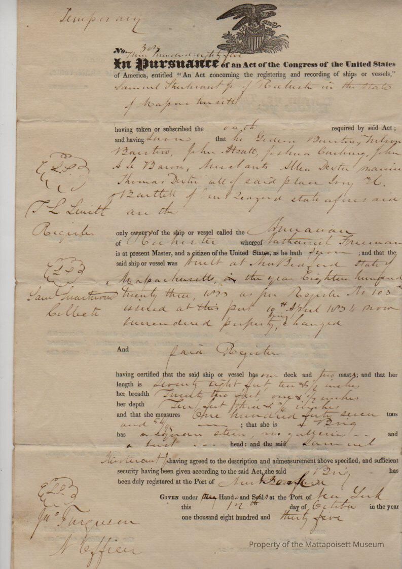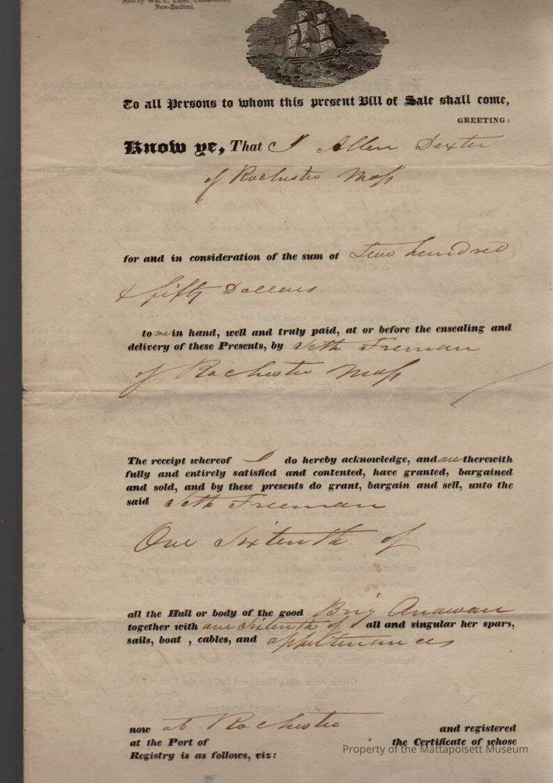 Sale of 1/16 of Brig Anawan from Allen Dexter to Seth Freeman.Collection
