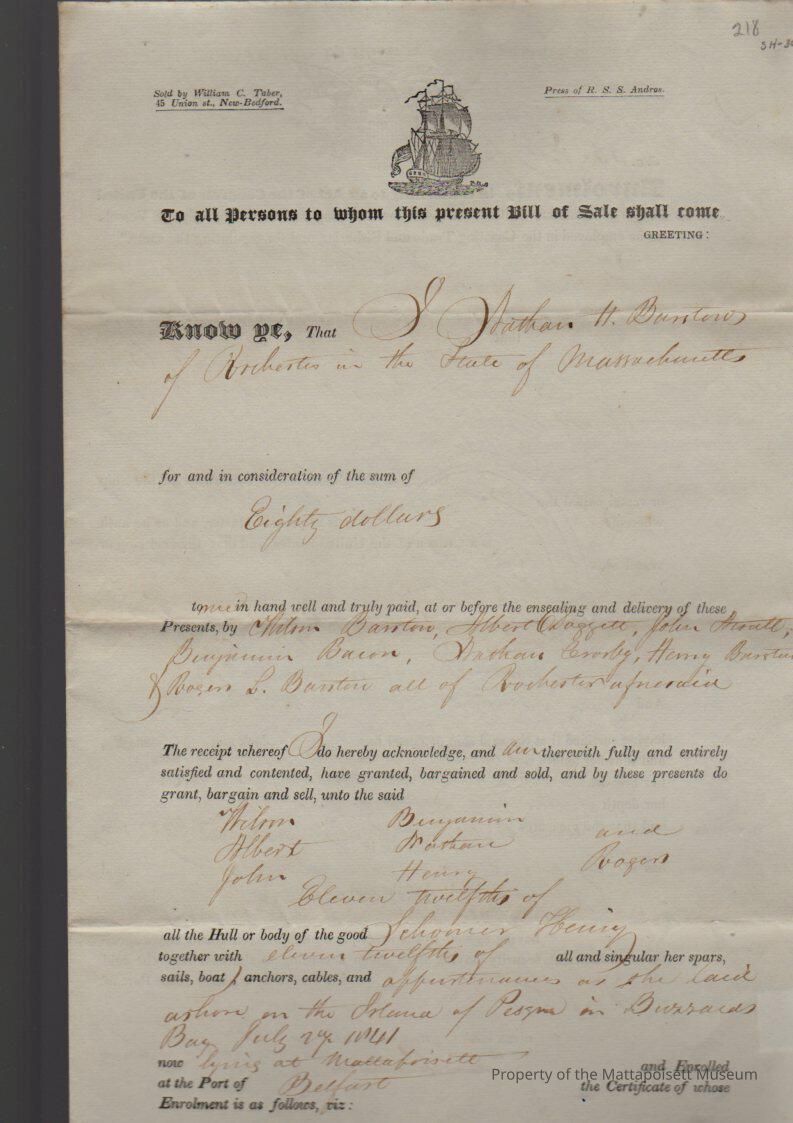 Sale of Schooner [Henry] from Nathan H. BarstowCollection