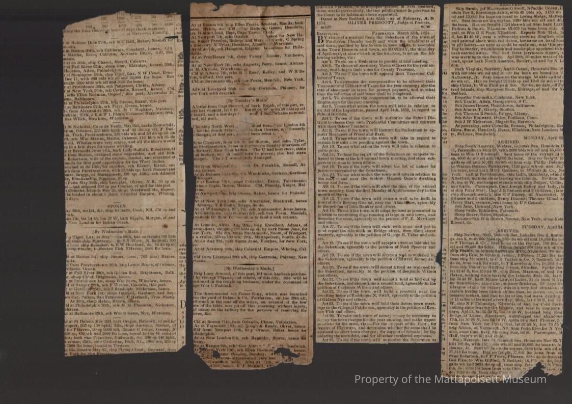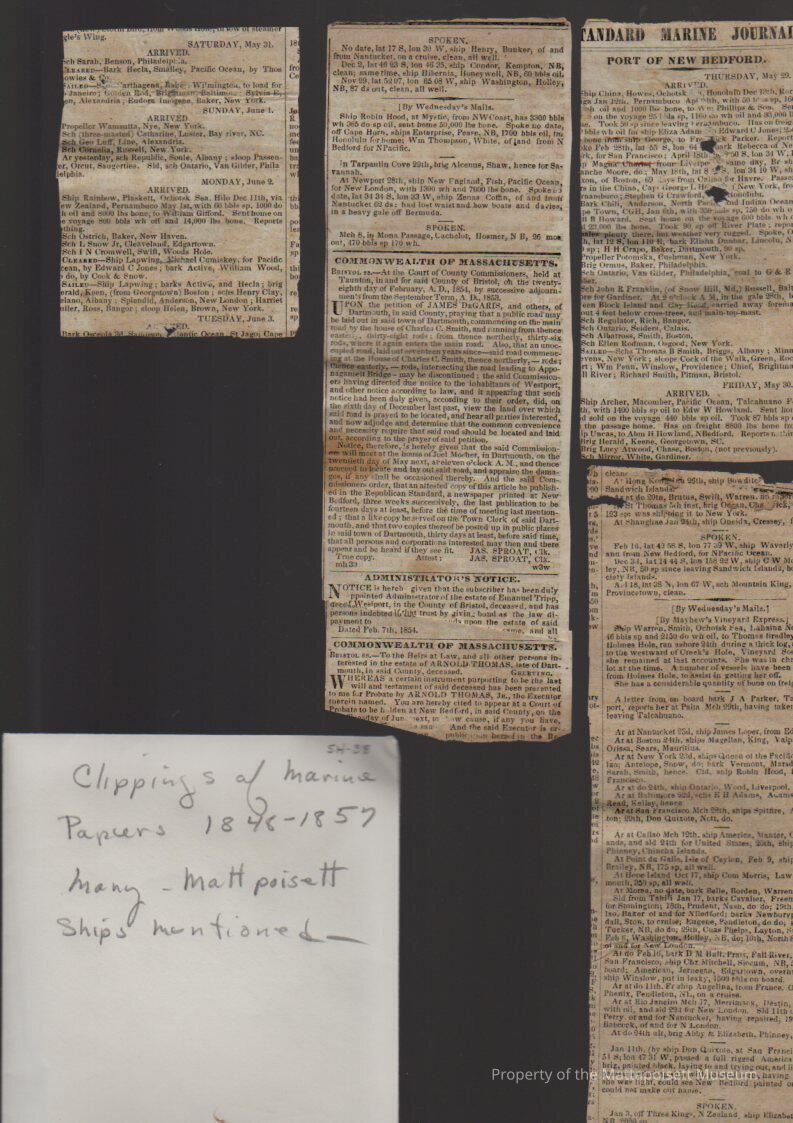 Newspaper clippings of marine papers, Mattapoisett ships mentioned.Collection