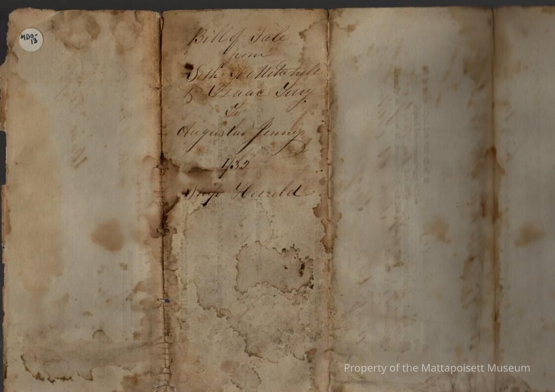 Bill of sale 1/32 Ship Harold from Seth A. [Mitahell] & Isaac Terry to Augustus Jenney.Collection