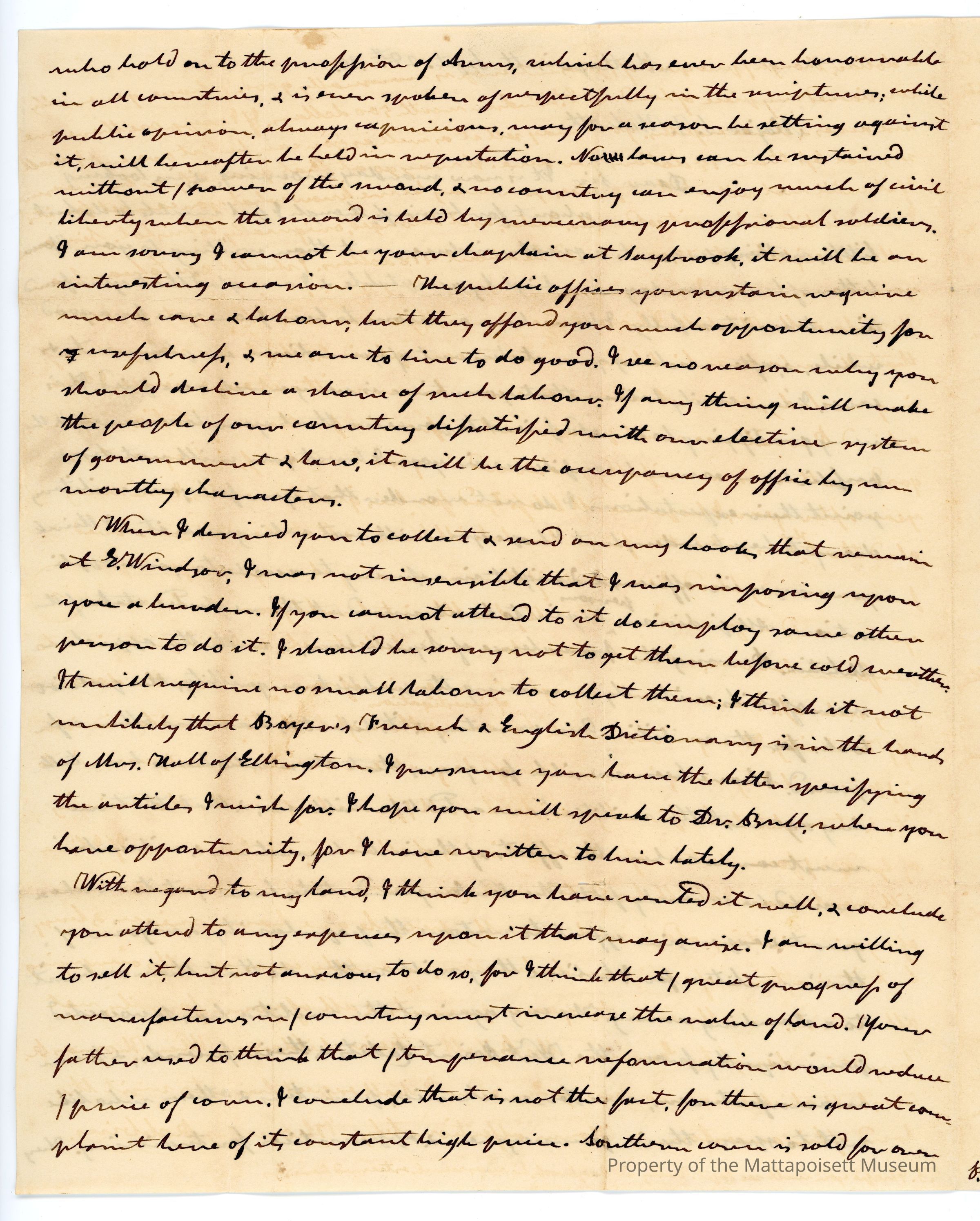 P.S. I hope you will see Capt. Tully at Saybrook, he was much esteemed here.