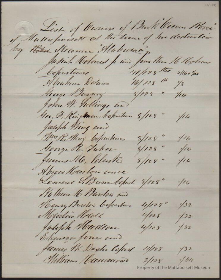 List of owners of Bark Ocean Rover of Mattapoisett at the time of her destruction by Steamer AlabamaCollection