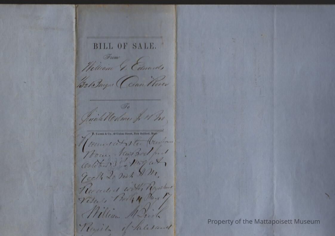Bill of sale from William G. Edwards 1/32 Barque Ocean Rover to Josiah Holmes Jr. & Bro.Collection