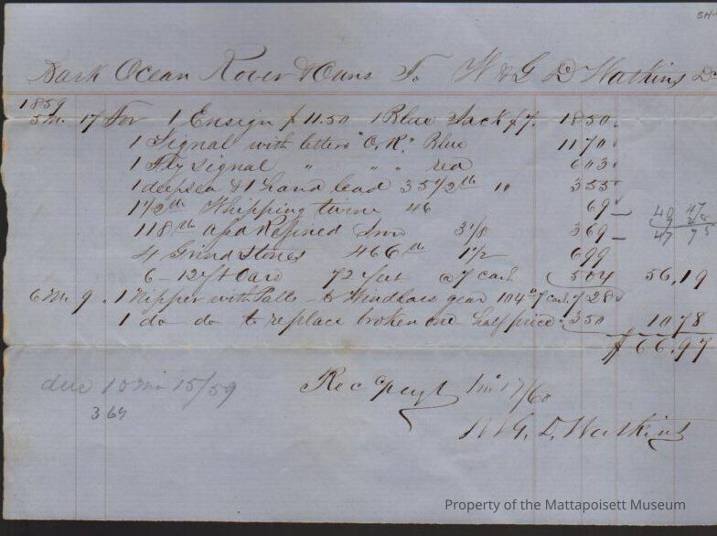 Receipt for Bark Ocean Rover with W. & G. D. Watkins.Collection