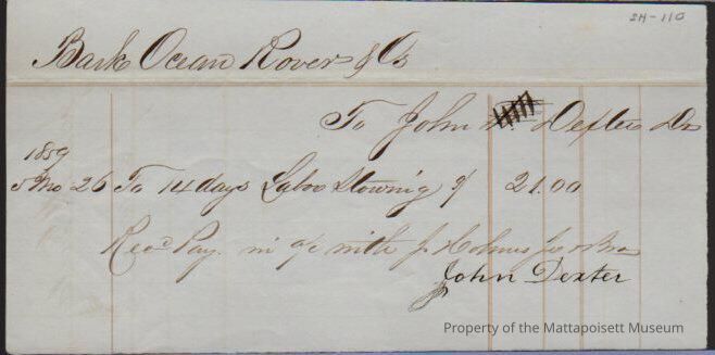 Receipt for Bark Ocean Rover & Owners to John Dexter, labor stowing.Collection