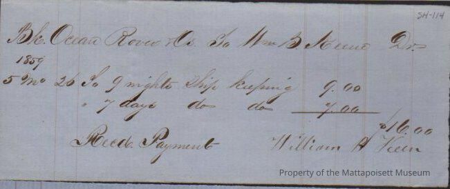Receipt for Bark Ocean Rover & Owners to William B. Keen for ship keeping.Collection