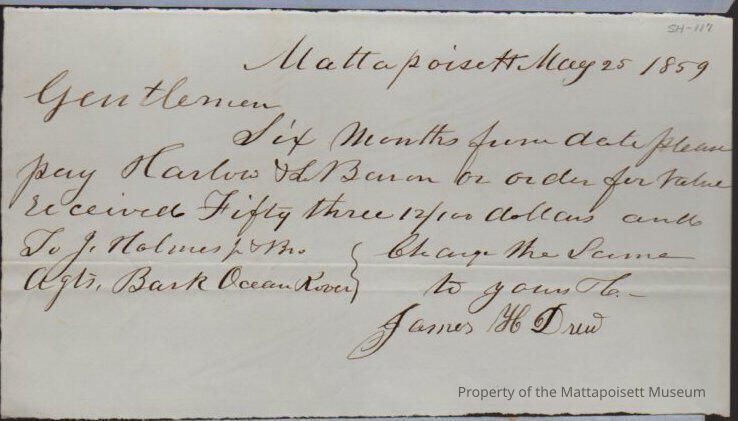 Payment request to pay Harlow & LeBaron to J. Holmes & Bros, agents of Bark Ocean Rover, James H. Drew.Collection