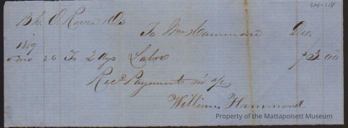 Receipt for Bark Ocean Rover & Owners to William Hammond for labor.Collection