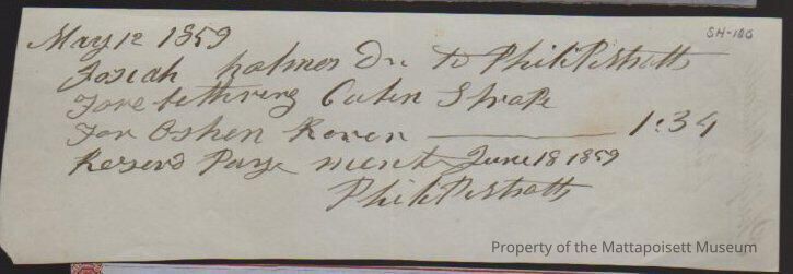Receipt for Josiah Holmes Jr. To Philo [Pir..att] for feathering cabin shape for [Oshen] Rover.Collection