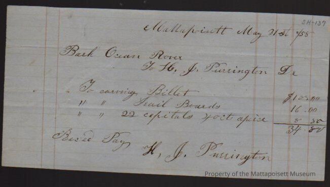 Bark Ocean Rover to H. J. Purrington to carving billet, boards.Collection