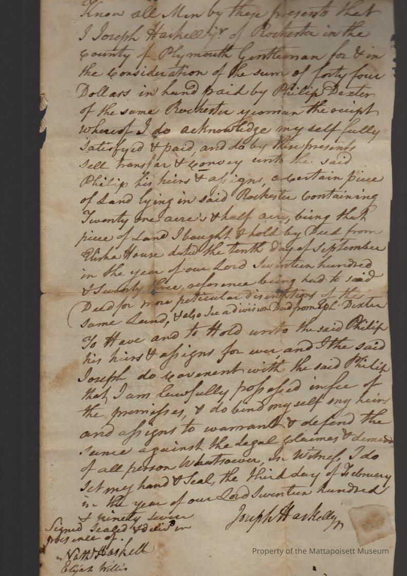 Quitclaim deed, Joseph Haskell Jr. to Philip Dexter, 21 1/2 acres once owned by Elisha House.Collection