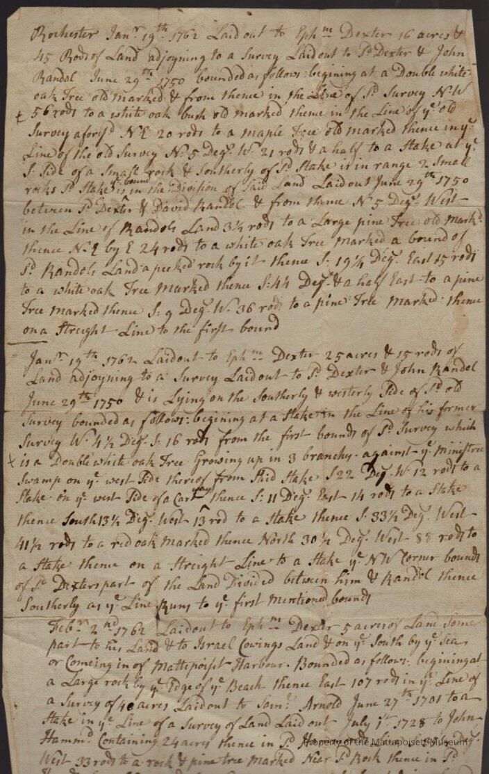 Descriptions of land laid out to Ephraim Dexter. 15 acres, 25 acres, 5 acres.Collection