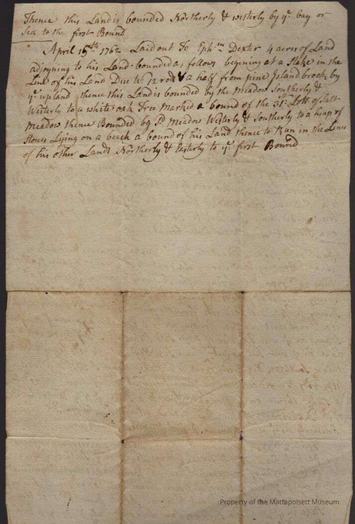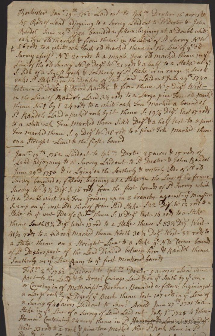 Descriptions of land laid out to Ephraim Dexter. Acreage and description of locations.Collection