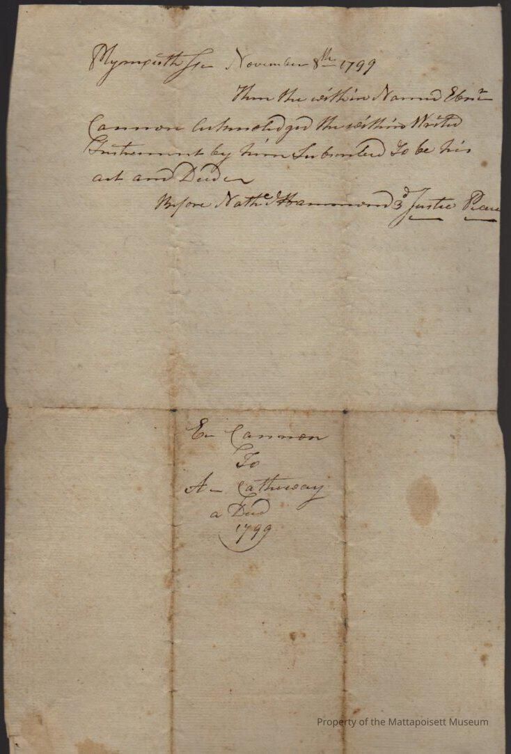 Quitclaim deed, Ebenezer Cannon to Abraham [Cathereay]. Woodland in second precinct.Collection