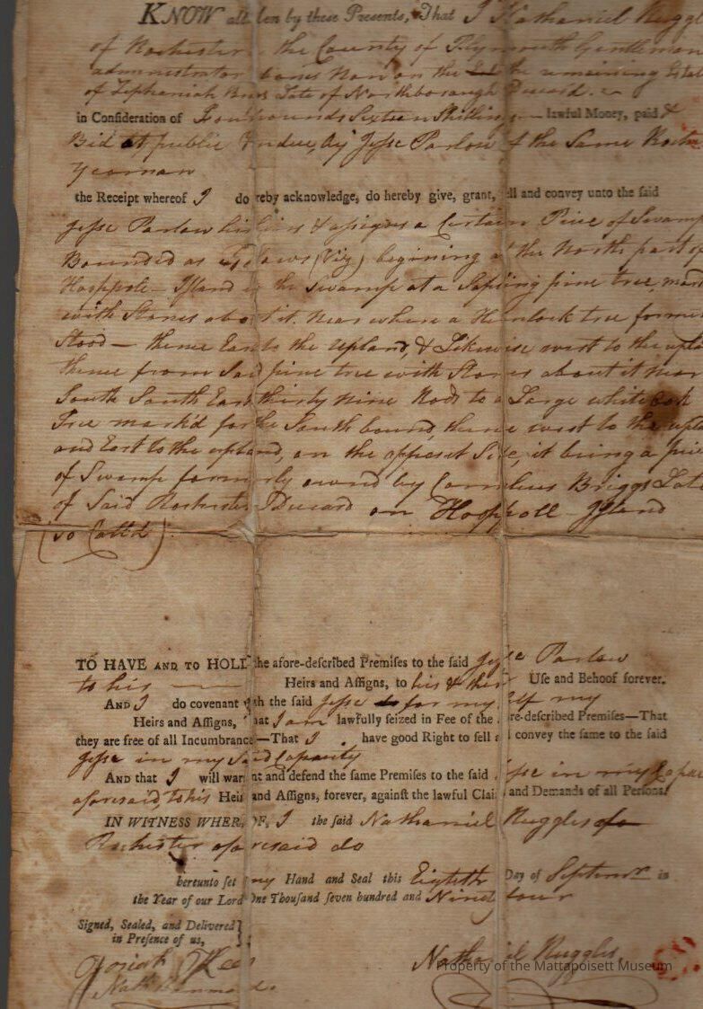 Quitclaim deed, Nathaniel Ruggles to Jesse Parlow. Book 102, folio 21.Collection