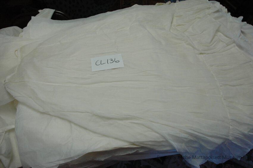 Notes: Notecard: Fine white muslin skirt of petticoat with ruffle.