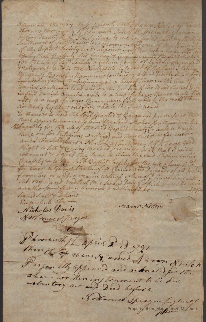 Quitclaim deed, Aaron Norton to Stephen Southward. Recorded November 21st 1793, Book 75, folio 16.Collection