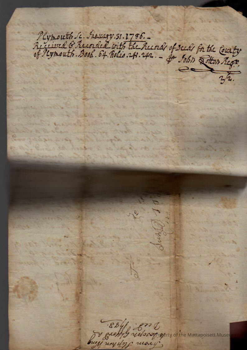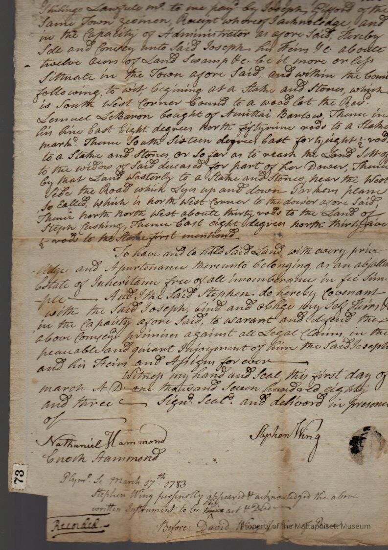 Quitclaim deed, Stephen Wing to Joseph Gifford. Recorded January 31, 1786, book 64, folio 241-242.Collection
