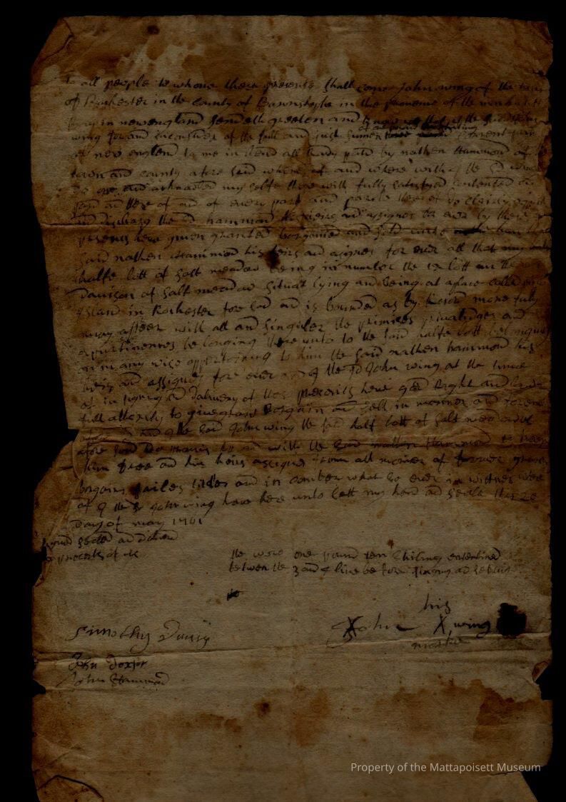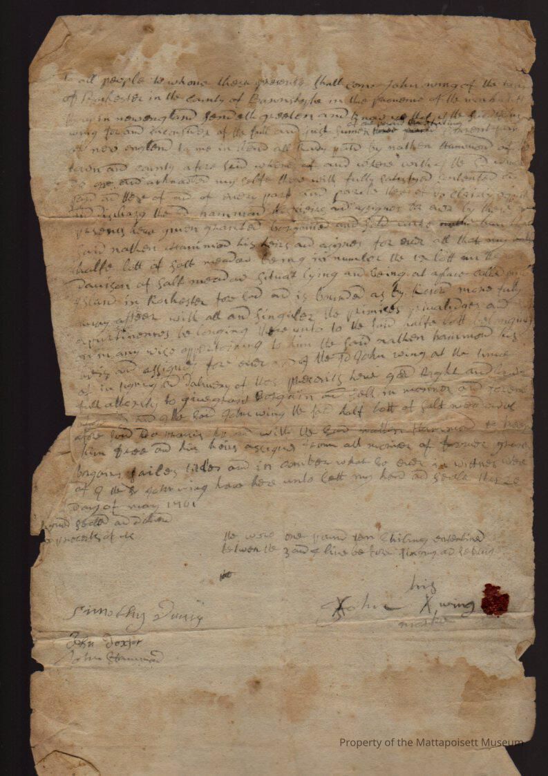 Quitclaim deed, John Wing to Nathan Hammond, a tract of salt meadow.Collection
