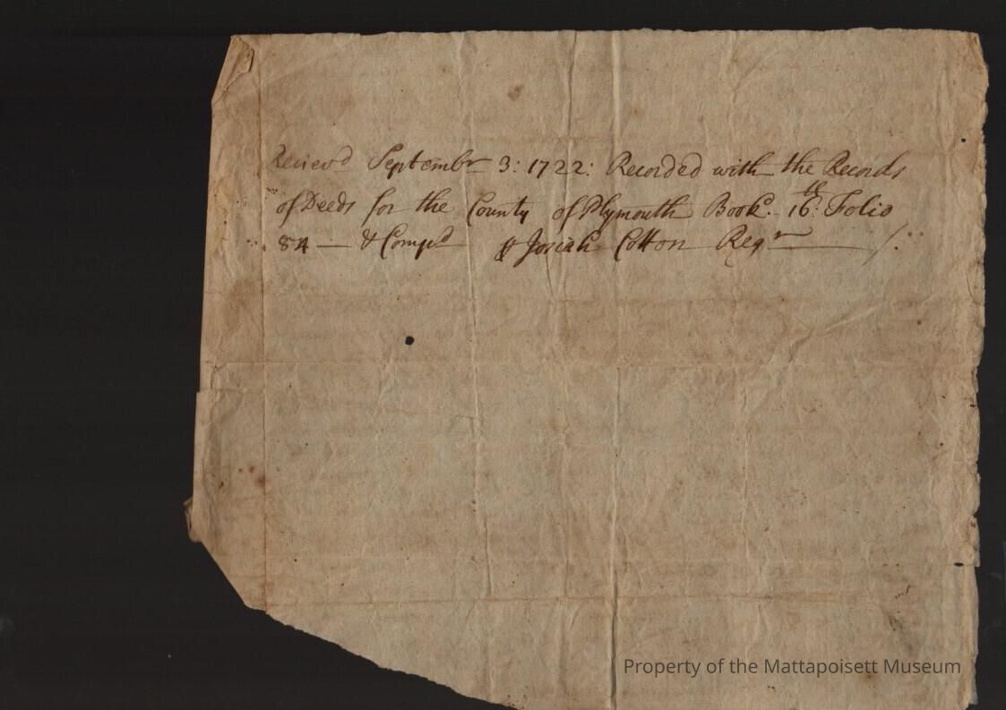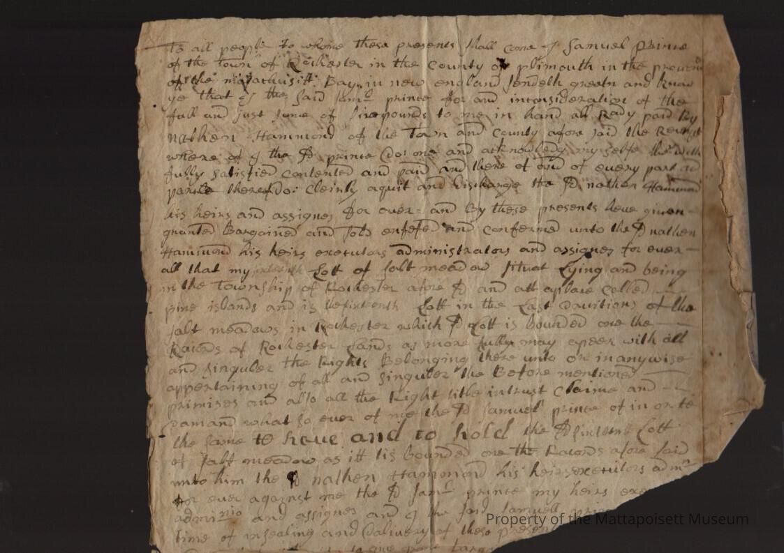 Quitclaim deed, Samuel Prince to Nathan Hammond, salt meadow. Recorded September 3, 1722, book 16, folio 84.Collection