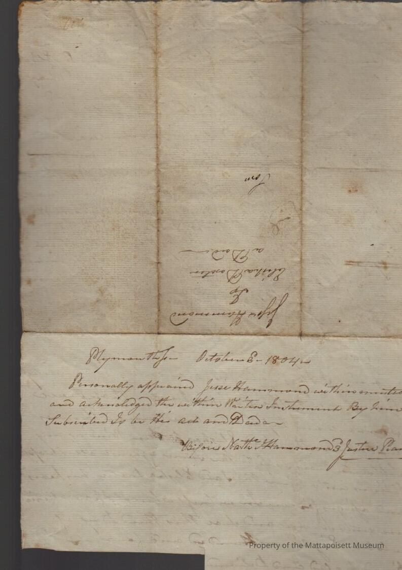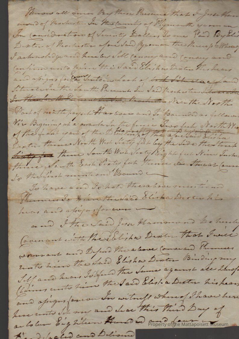 Quitclaim deed, Jesse Hammond (yeoman) of Rochester to Elisha Dexter (yeoman) of Rochester, land in south precinct near the north part of Mattapoisett Harbor for $70Collection