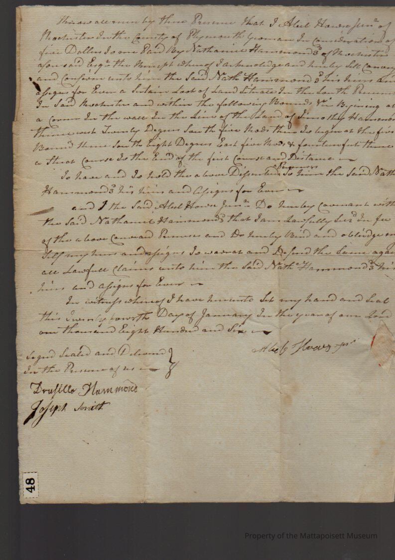 Quitclaim deed, Abel House Jr. (yeoman) of Rochester to Nathaniel Hammond 3rd (esq.) of Rochester, land in the South Precinct for $5.Collection