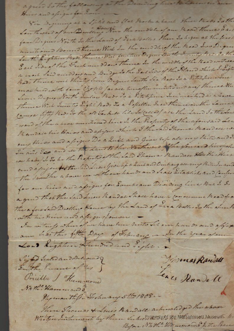 Dividing line for Thomas Randall and Louis Randall. Recorded October 7th 1808, book 109, folio 91.Collection