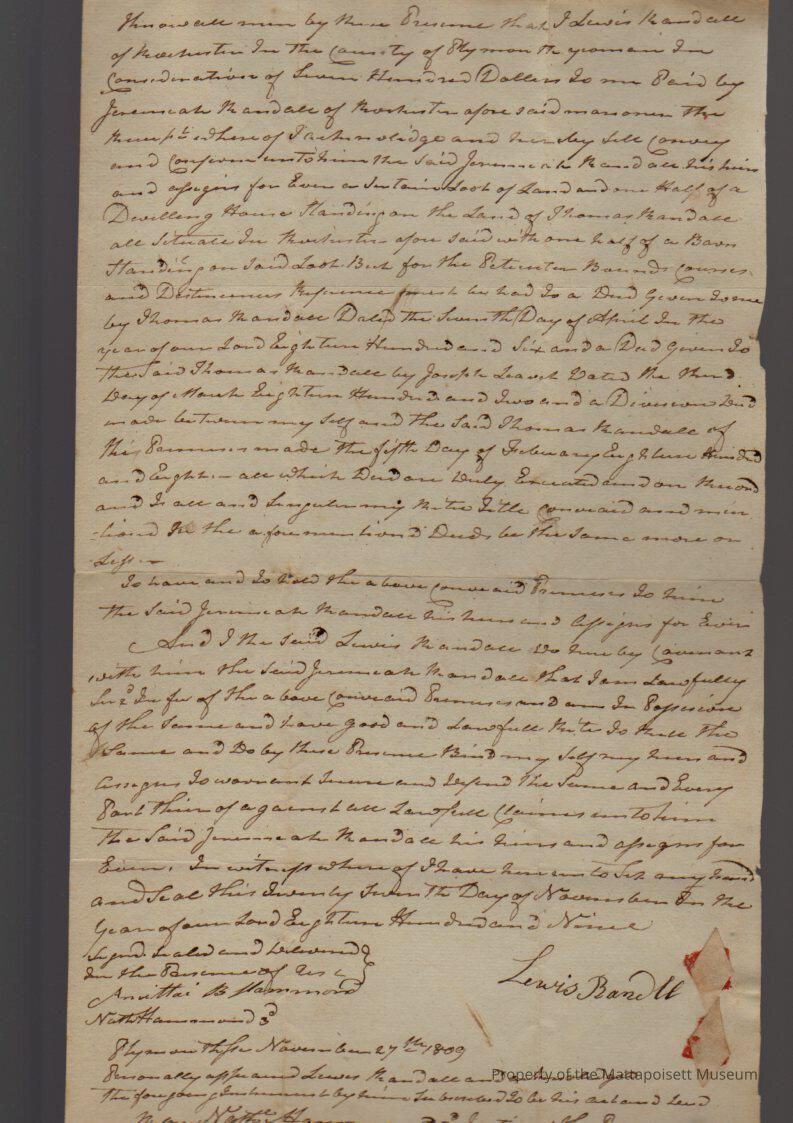 Quitclaim deed, Lewis Randall (yeoman) of Rochester to Jerimiah Randall (mariner) of Rochester, land and one half dwelling house for $700.Collection
