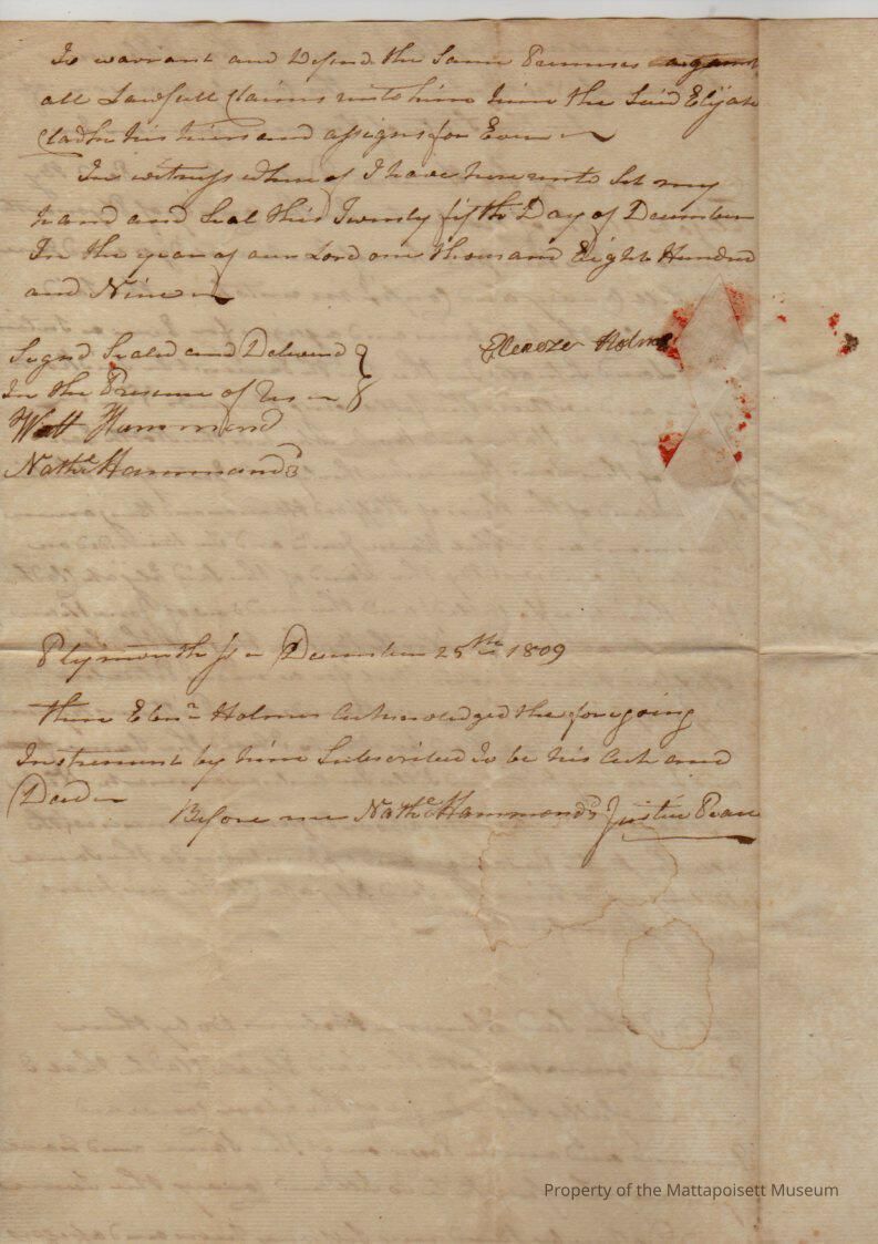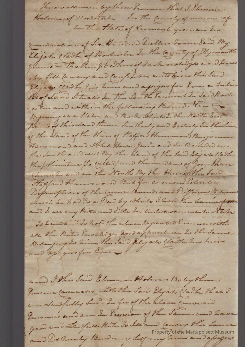 Quitclaim deed, Elbenezer Holmes (yeoman) of Woodstock to Elijah Clarke (yeoman) of Rochester, lot of land in the south Precinct for $600.Collection
