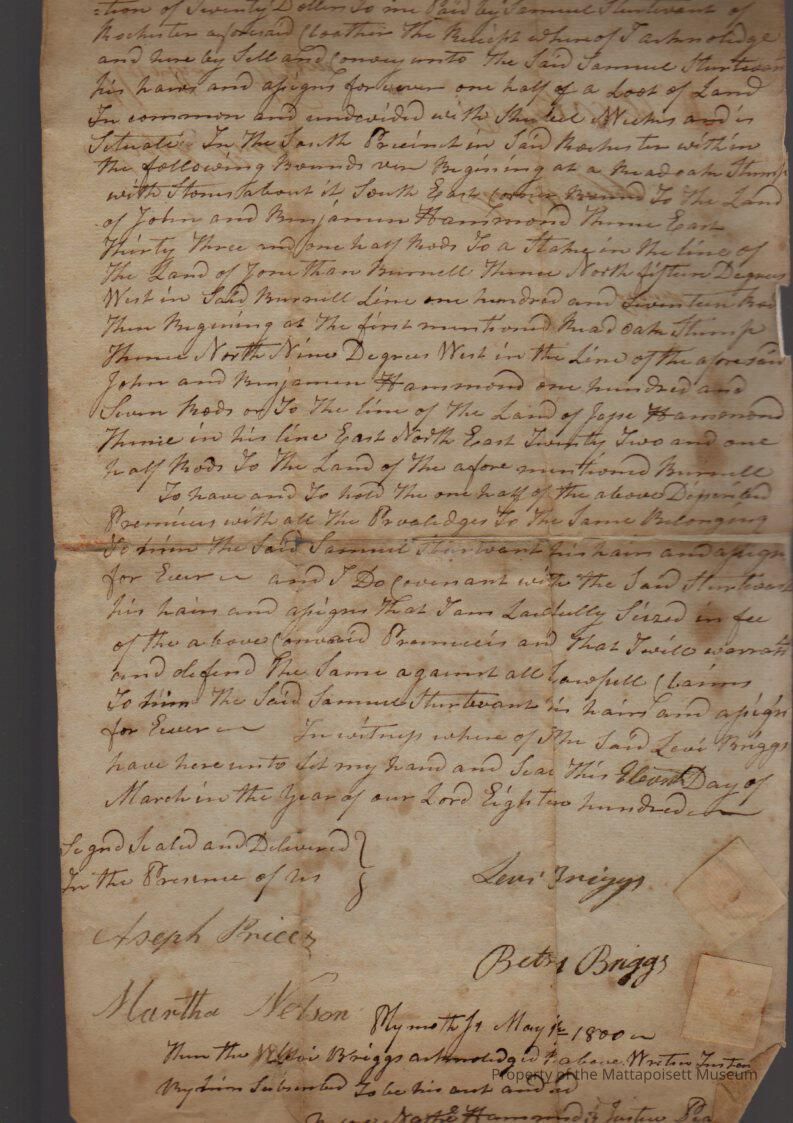Quitclaim deed, Levi and Betsy Briggs to Samuel Sturtevant (cloathier) of Rochester, one half lot of land in common and undivided with the Shubel Weeks, in the South Precinct.Collection