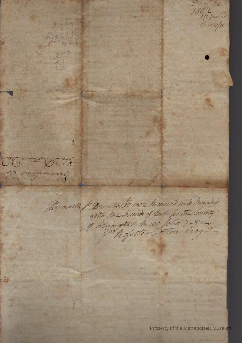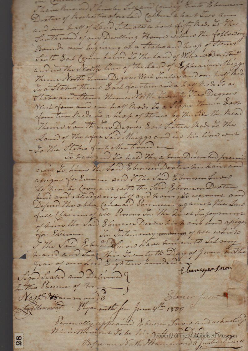 Quitclaim deed, Ebenezer and Elener Snow to Ebenezer Dexter (caulker), two and one half acres of land. Recorded December 20th 1802, book 105, folio 7-8Collection