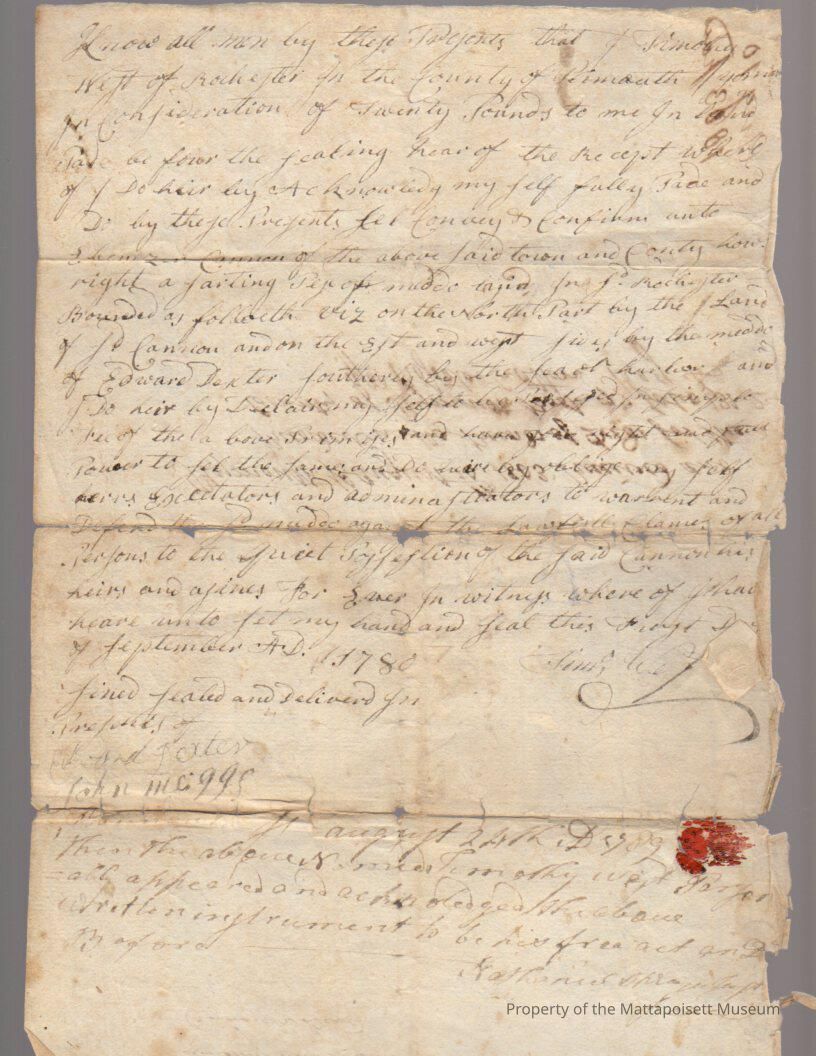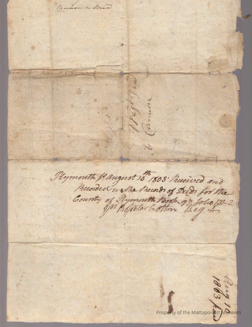 Quitclaim deed, Timothy West (yeoman) of Rochester to Ebenezer Cannon (house right) of Rochester, for 20 pounds, land in Rochester. Recorded August 10th 1803, book 92, folio 131-132.Collection