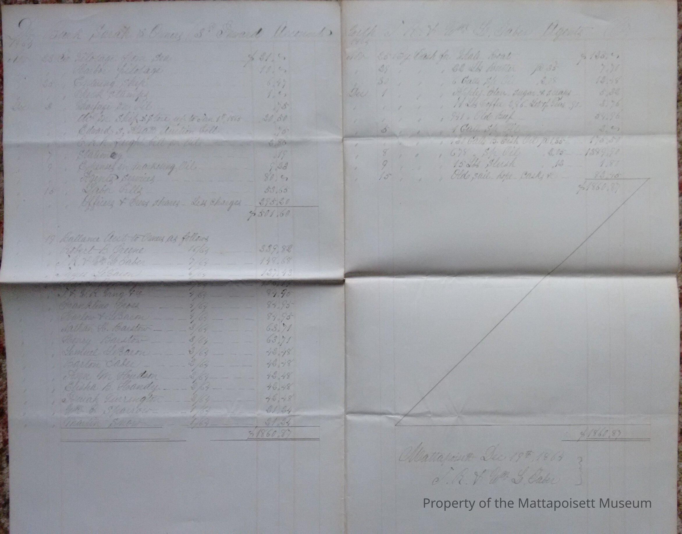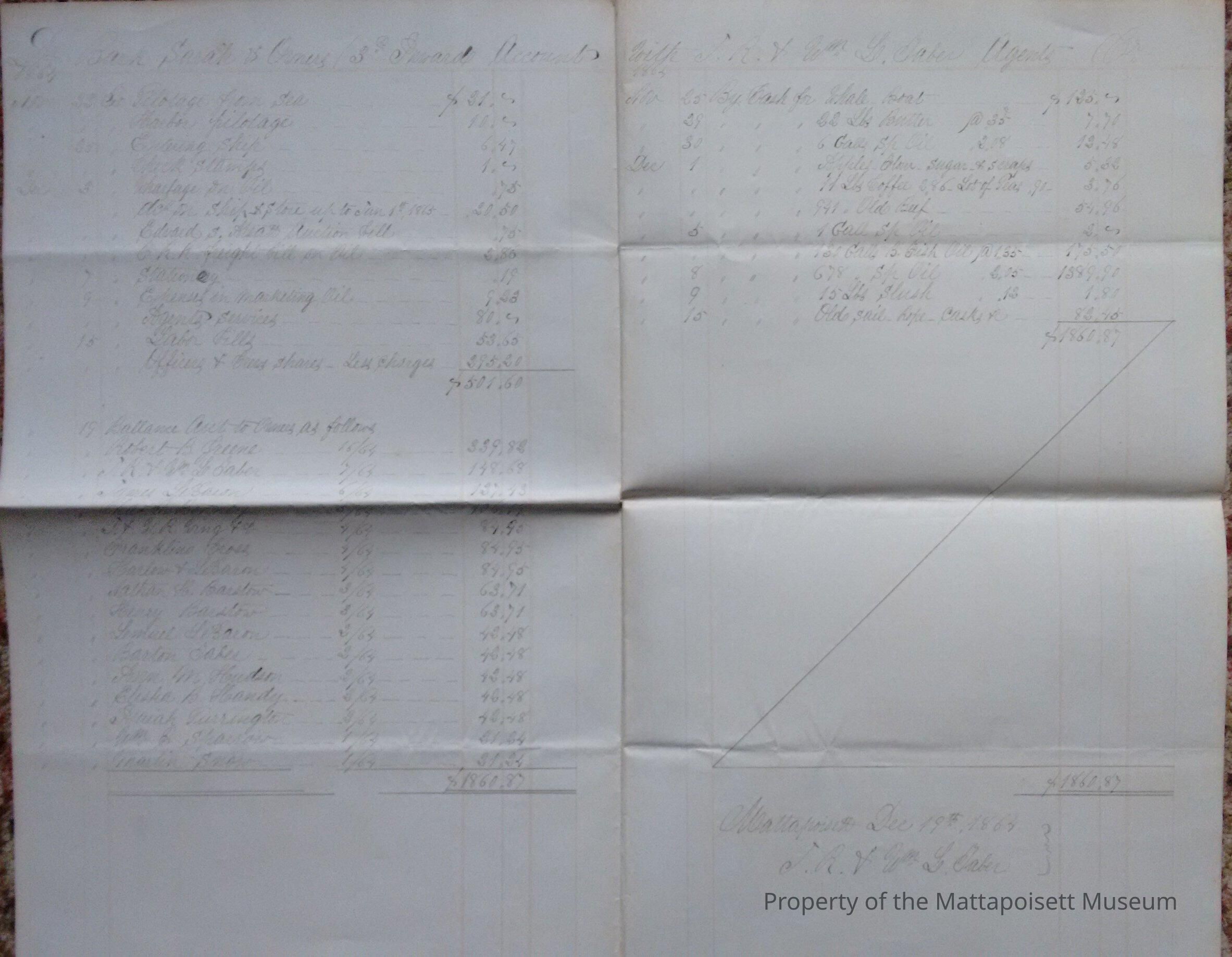 Accounting pages for Bark Sarah and owners, in account with J. R. & Wm L. Taber.Acquisition