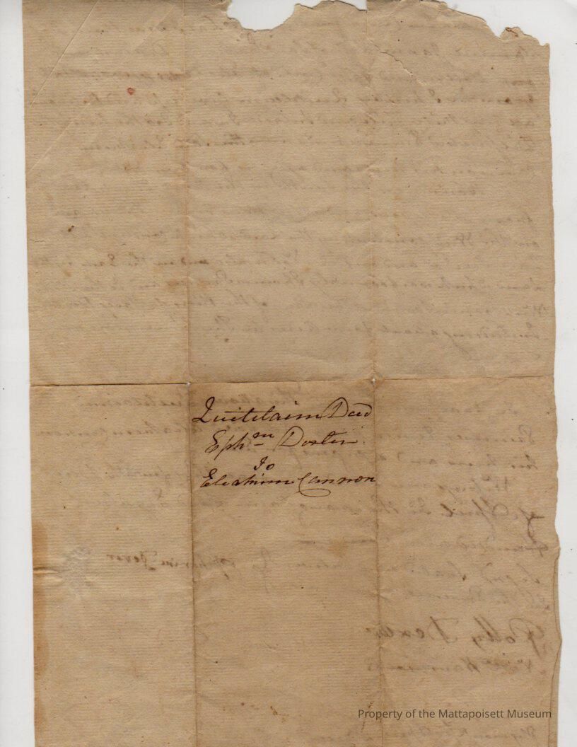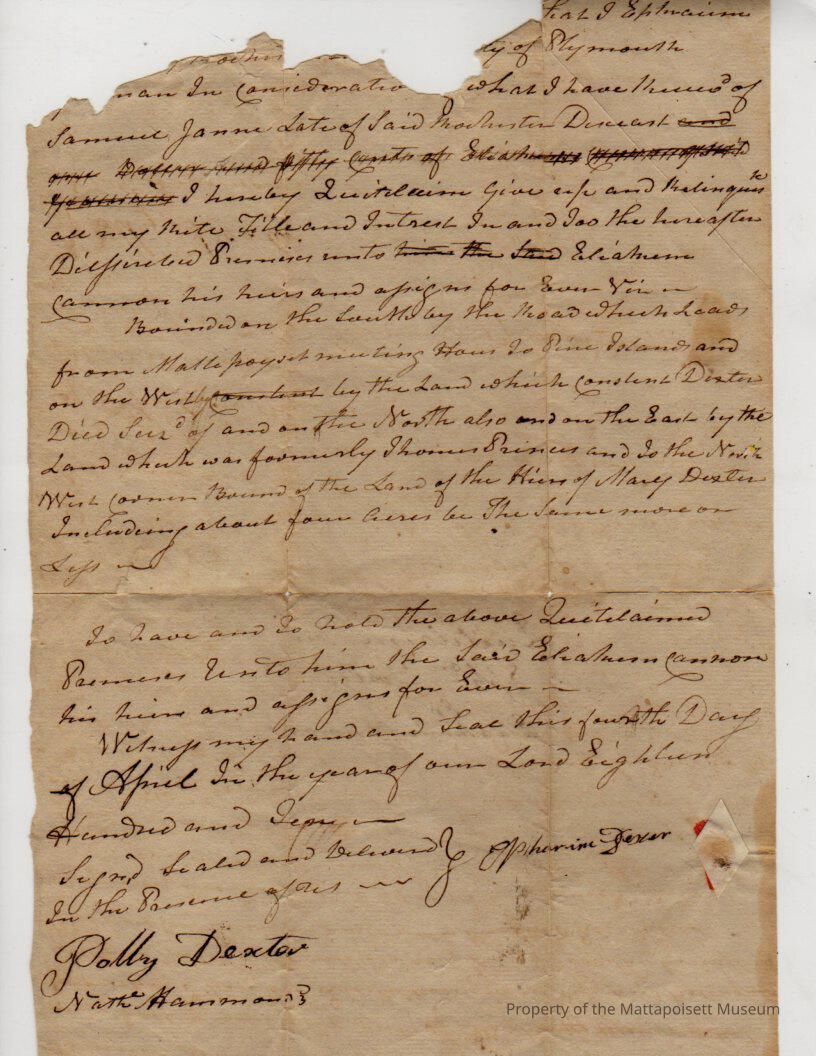 Deed, Ephraim Dexter to Eliakim Cannon, land by the road which leads from Mattapoyset meeting house to Pine Island.Collection
