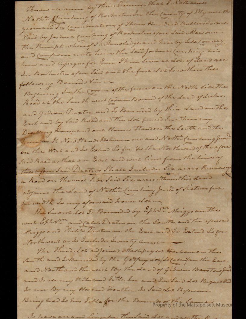 Deed, Nathan Cushing to Joshua Cushing. $300Collection