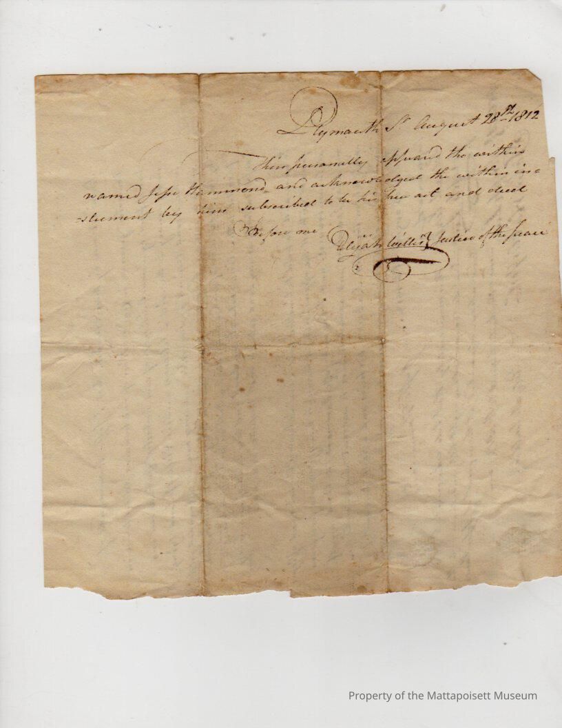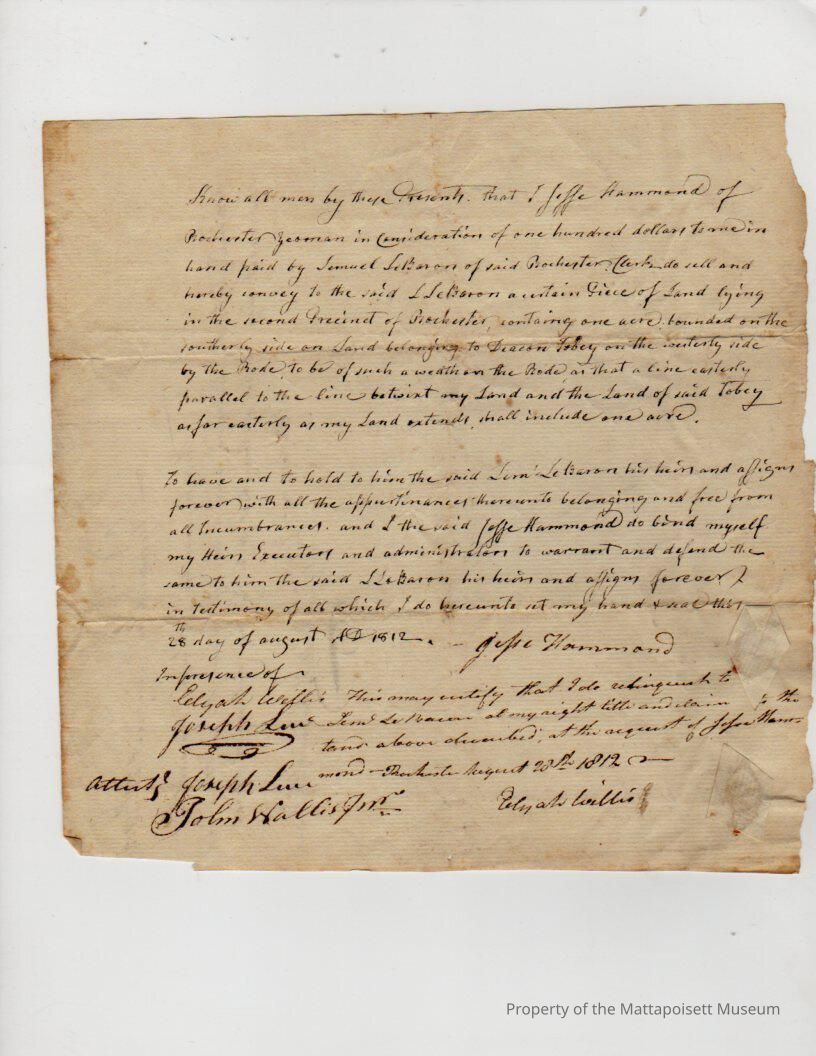Deed, Jesse Hammond to Lemuel LeBaron. $100, one acre.Collection