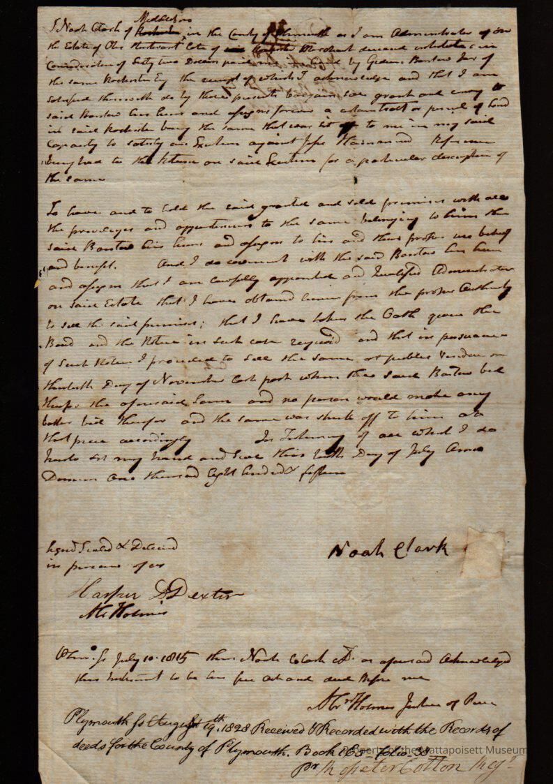 Deed, Noah Clark to Gideon Barstow. $62Collection